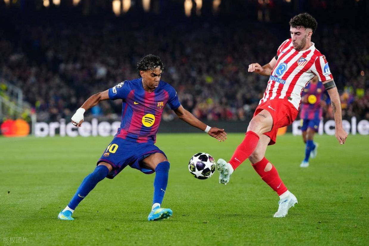 一周前在诺坎普的首回合较量,马竞交出了一场教科书式的防守反击胜利。第38分钟,阿尔瓦雷斯以一记技惊四座的直接任意球世界波洞穿巴萨球门,为客队打破僵局;第47分钟,瑟洛特在反击中冷静推射得手,将比分锁定为2-0。然而,比赛真正的转折点出现在上半场——马竞球员久里亚诺制造库巴西红牌,巴萨在半场结束前便被迫十人应战,攻防节奏彻底被打破。全场马竞控球率不足四成,但高效的防守反击让巴萨的传控体系显得苍白无力。次回合想要翻盘,巴萨至少需要净胜2球,将比赛拖入加时甚至点球大战。